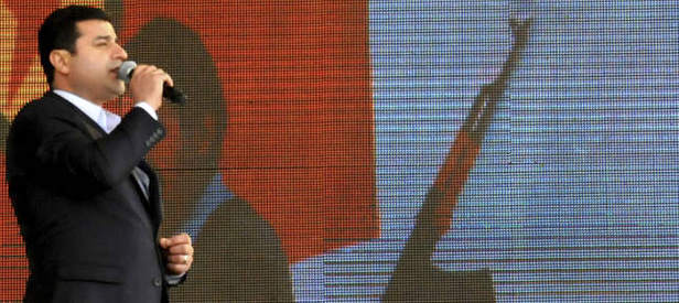 Demirtaş üzerinden daha bir hafta geçmeden, nevruz kutlamaları bahanesiyle Diyarbakır'da kalaşnikof, terör örgütü dileri ve PKK paçavrasının altında yaptığı konuşmaları unuttu! Demirtaş'ın bu açıklaması komik olmaktan öteye gidemedi!
