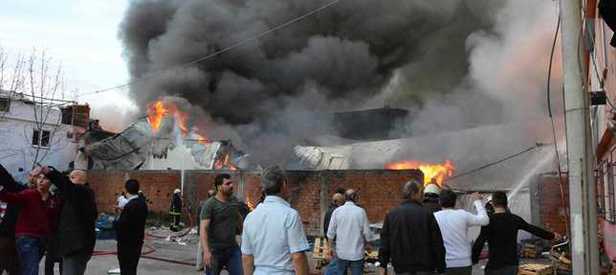 Olay yerine gelen polis ekipleri çevredeki binaları boşalttı. Yangını söndürme çalışmaları sürüyor.
