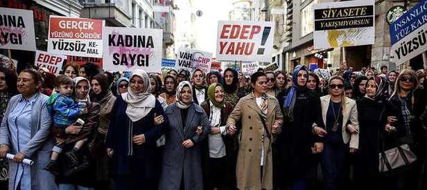 Protesto gösterisinde "Siyasetin Çirkin Yüzü Kemal İstifa yazılı pankart ile dövizler açan yüzlerce partili kadın, Tünel Meydan'dan Galatasaray Meydanı'na kadar alkışlarla yürüdü. Kadın bakana yönelik eylemde, sık sık CHP Lideri aleyhinde slogan atan eylemciler, Kılıçdaroğlu'nu istifaya davet etti. Eylemciler, Galatasaray Lisesi önüne geldiklerinde burada ortak basın açıklaması yaptı.