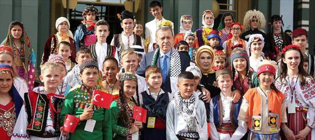 Cumhurbaşkanı Tayyip Erdoğan, 38. Uluslararası 23 Nisan Çocuk Şenliği için dünyanın 25 ülkesinden Türkiye'ye gelen 300'ü aşkın çocuğu Cumhurbaşkanlığı Külliyesi'nde ağırladı. Çocuklara seslenen Erdoğan, "Siz çocuklar hesapsız, riyasız, yalansız sevginin adısınız. 5 tane torunum var. Onları kucakladığımda ne hissediyorsam inanın bana her çocuk için aynısını hissediyorum" dedi. Öte yandan Cumhurbaşkanı Erdoğan, eşi Emine Erdoğan, Türk ve yabancı çocuklarla birlikte Külliye bahçesine 'Medeniyet çınarı' adı verilen bir çınar ağacı dikti. Erdoğan, daha sonra dünyanın 6 nehrinden getirilen sularla, çınar ağacına can suyu verdi. Can suyunun Nil, Dicle, Mississippi, Fuji, Ganj ve Tuna nehirlerinden getirildiği öğrenildi. Ayrıca çocukların kabulü için salon rengarenk süslendi. Sahnenin yan taraflarında ise Karagöz ve Hacivat modelleri yer aldı.