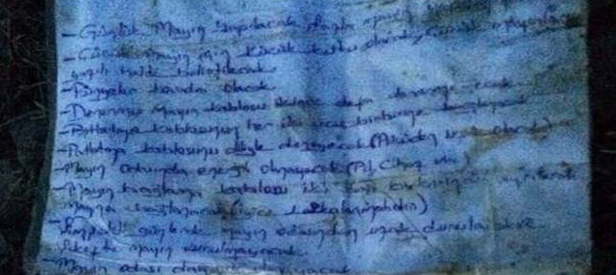 Ele geçirilen dökümanlarda teröristlere mayın talimatlarının verildiği belirlendi.