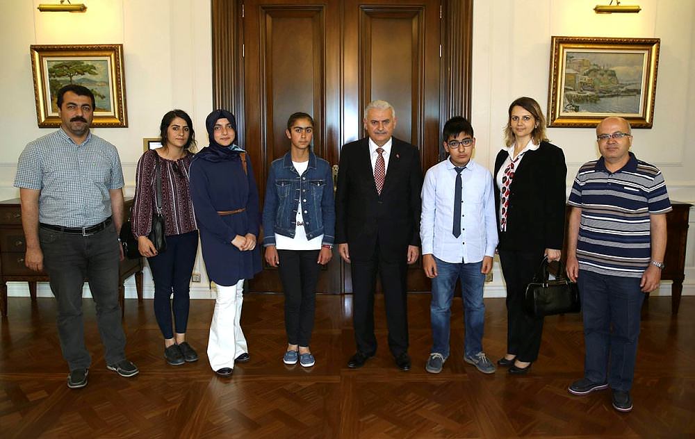 Başbakan Binali Yıldırım, Temel Eğitimden Ortaöğretime Geçiş (TEOG) ikinci dönem sınavında, soruların tamamını doğru yanıtlayarak Türkiye birincileri arasında yer alan Muş'lu öğrencileri makamında kabul etti.