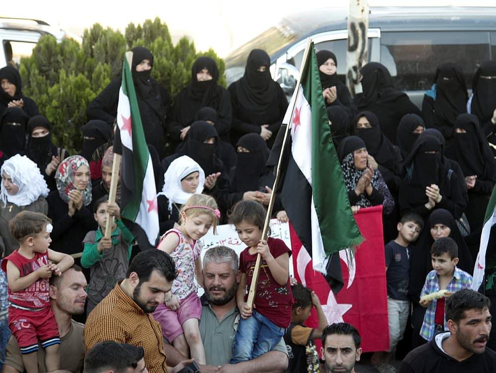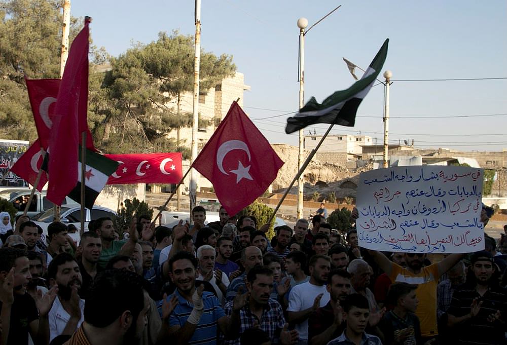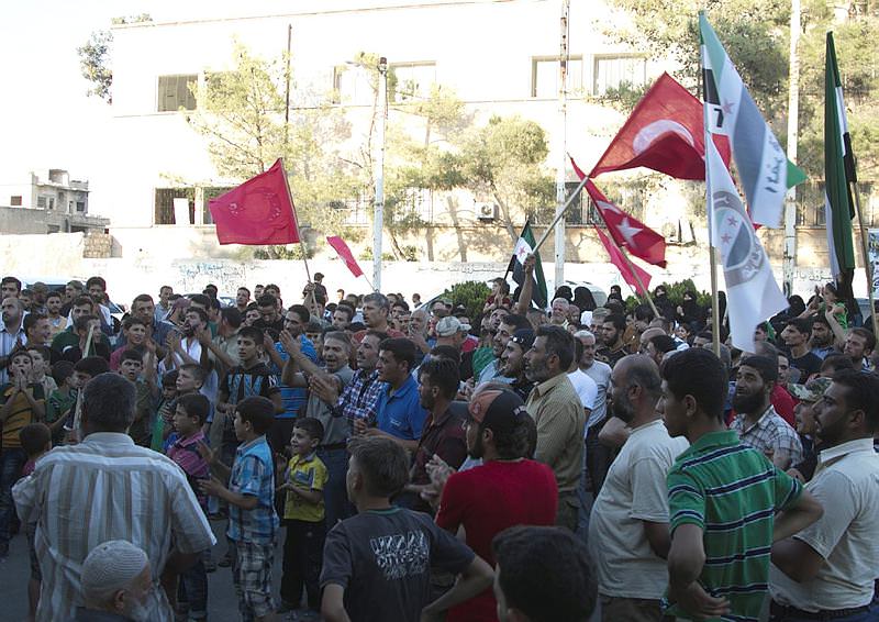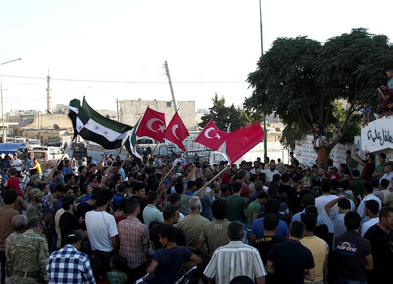 Suriye'nin kuzeybatısındaki muhaliflerin denetiminde bulunan İdlib'te yüzlerce kişi, Fetullahçı Terör Örgütü'nün (FETÖ) darbe girişimini protesto ederek Türk halkına destek verdi.