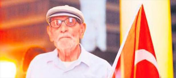 İzmir'de yaşayan 95 yaşındaki Hacı Mehmet Keskinbalta, ilerleyen yaşına rağmen Konak Meydanı'nda FETÖ'cü hainlerin darbe girişimine karşı ilk günden itibaren "demokrasi nöbeti" tutuyor. Yakınlarının yardımıyla Konak Meydanı'na gelen Keskinbalta, elinde sımsıkı tuttuğu Türk bayrağını sallıyor, gücü yettiği kadarıyla çalan marşlara eşlik ediyor.