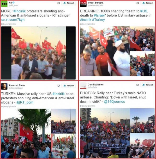 Sosyal medya üzerinden "Darbenin merkez üssü İncirlik'e yürüyoruz" ve "Darbeci Amerika'ya mesajımız var" ifadeleriyle duyurulan protesto eylemine binlerce kişi katıldı.