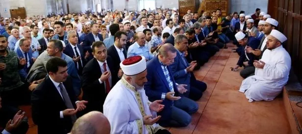 Cumhurbaşkanı Recep Tayyip Erdoğan, 15 Temmuz darbe girişiminde şehit olan danışmanı Mustafa Varank'ın ağabeyi Prof. Dr. İlhan Varank ve şehitler için Şehzadebaşı Camii'nde okutulan mevlide katıldı.