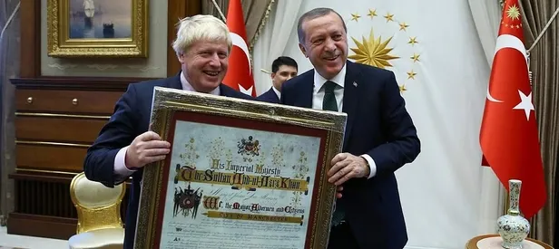 Cumhurbaşkanı Erdoğan, İngiltere Dışişleri Bakanı Boris Johnson'ı kabul etti. Erdoğan, Johnson'a Manchester Belediye Başkanı Robert Neil'in Sultan Abdülaziz mektubunun replikasını hediye etti.