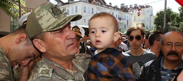 2. Ordu Komutan Korgeneral İsmail Metin Temel, şehidin 1 yaşındaki oğlu Yağız Pars'ı kucağından düşürmedi.