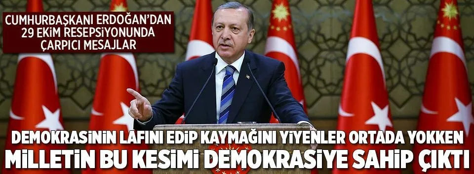 Erdoğan: Kazanacaksak adam gibi kazanacağız. Öleceksek de adam gibi öleceğiz. Bunun ortası kalmadı. Cumhuriyet bir asırdır en büyük kazancımız. En gelişmiş ülkelerde ne varsa Türkiye’de de en az bunlar olacak