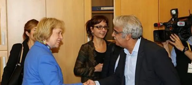 Burada olduğunu için teşekkür ediyoruz. Dünkü gözaltılar ve devam eden mahkeme süreciyle ilgili bilgileri paylaşacağız" diye karşılık verdi. Almanya Devlet Bakanı Böhmer, resmi temaslarda bulunmak üzere daha önce geldiği Ankara'da bugün beraberindeki heyetle birlikte HDP'nin Meclis grubunu ziyaret etti. Böhmer, HDP'li Hişyar Özsoy'a "Özellikle şu anki zor durumunuza ilişkin birtakım bilgiler almayı umut ediyorum. Zira HDP milletvekillerinin bazılarının gözaltına alındığını duymuş bulunmaktayız.Sizinle bu konu hakkında görüşmek de istiyoruz" dedi. HDP'li Özsoy, ise ziyaretlerinden dolayı Böhmer'e teşekkür ederek, şöyle konuştu: