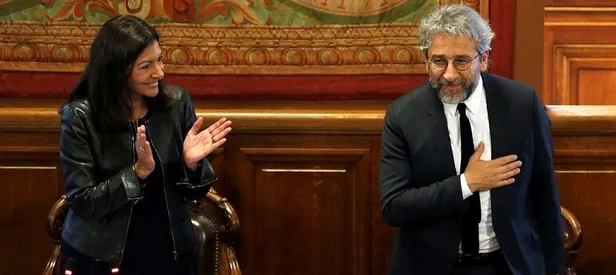 Türkiye'de hakkında yakalama kararı olan Dündar, dün Almanya Cumhurbaşkanı tarafından kabul edildikten sonra bugün de Paris Belediye Başkanı Anne Hidalgo tarafından belediye binasında düzenlenen törenle fahri hemşehrilik nişanı aldı.