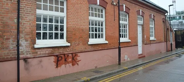 Terör örgütü PKK yandaşları Londra Diyanet Camisi'ne taşlı saldırıda bulundu. Saldırganlar caminin duvarına da terör örgütünün adını yazdı.