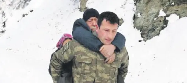 Osmaniye'de kalp yetmezliği, diyabet ve tansiyon hastası Adem Şenol, rahatsızlanınca 112 Acil'den yardım istendi. Ama kar nedeniyle ambulans Şenol'un evine kadar gelemedi. Yol açılamayınca Jandarma Uzman Çavuş Süleyman Yener, Şenol'u sırtına aldı. 1 kilometre giden vefakar asker, kara bata çıka ambulansa kadar taşıdı.