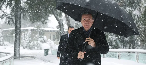 İstanbul'da yağan karın altında bir süre yürüş yapan Cumhurbaşkanı Erdoğan daha sonra eşi Emine Erdoğan ile birlikte özel uçak "ANA" ile İstanbul'dan Ankara'ya hareket etti.