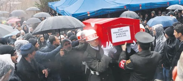 Kahramanmaraşdün şehidine ağladı. Fırat Kalkanı Harekâtı kapsamında El Bab'da yürütülen operasyonda şehit düşen Astsubay Osman Açıkgöz (25), memleketi Kahramanmaraş'ta son yolculuğuna uğurlandı. Törene aralarında Başbakan Yardımcısı Veysi Kaynak'ın da bulunduğu 3 bin kişi katıldı. Açıkgöz'ün, Bingöl Özel Harekat Tabur Komutanlığı'nda görev yapan ağabeyi Astsubay Halil Açıkgöz ile baba Ali Açıkgöz güçlükle ayakta kaldı. Anne Selamet Açıkgöz şehit evladının tabutunun başında, "Ciğerimizi yakanların kendi ciğerleri yansın. Vatan sağ olsun kuzum. Kanınız yerde kalmaz yavrum"diye ağladı.