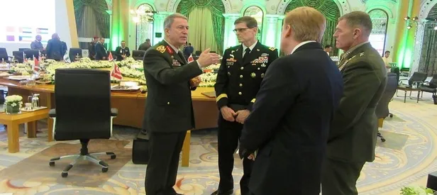 Çekilen fotoğrafta toplantıya katılanların Hulusi Akar karşında ellerini bağlaması ise dikkat çekti.