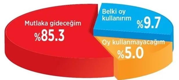 Yapılan son araştırmaya göre, referandumdaki katılımın yüksek olacağı sonucu ortaya çıktı. Araştırmaya katılanların yüzde 85'i 'sandığa mutlaka gideceğim' dedi.