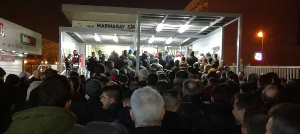 Marmaray istasyonlarında oluşan kalabalık nedeniyle yolcular marmaray istasyonuna aralıklarla alınıyor.