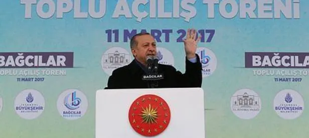 Cumhurbaşkanı Recep Tayyip Erdoğan, Kirazlı metro çıkışında Bağcılar toplu açılış töreninde konuştu. Konuşmasında Hollanda'nın Bakan Çavuşoğlu'nun uçağına iniş izni vermemesine de değinen Erdoğan, "Bundan sonra senin uçakların bakalım Türkiye'ye nasıl gelecek?" dedi.