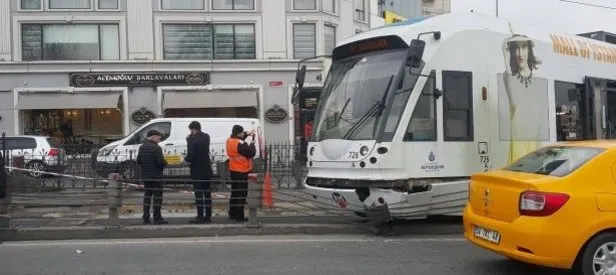 Kabataş-Bağcılar seferini yapan tramvay Sirkeci'de raydan çıktı. Tramvay yol kenarındaki bariyerlere çarptı.