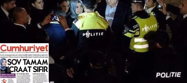 Teröre ve teröriste olan desteğiyle bilinen FETÖ'nün paçavrası Cumhuriyet, Aile ve Sosyal Politikalar Bakanı Fatma Betül Sayan Kaya’ya itibar suikastı yaptı. Gazete, Hollanda'nın faşist uygulamalarına karşı dik duruş gösteren Bakan Kaya'yı “Şov Tamam İcraat Sıfır” manşetiyle, karalamaya çalıştı.