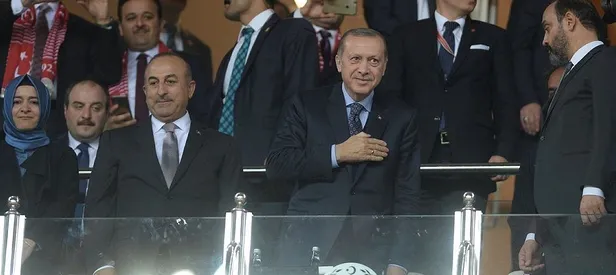 Enerji ve Tabii Kaynaklar Bakanı Berat Albayrak, Dışişleri Bakanı Mevlüt Çavuşoğlu ve Cumhurbaşkanlığı Sözcüsü İbrahim Kalın da Erdoğan ile birlikte stada giriş yaptı.