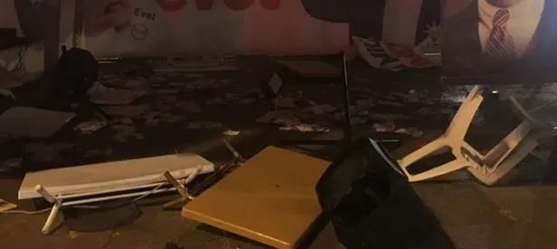 AK Parti'nin kurduğu çadıra gelen üç kişi, masa ve sandalyeleri devirip broşürleri etrafa saçarak saldırıda bulundu