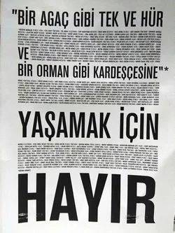 "Bir ağaç gibi tek ve hür ve bir orman gibi kardeşçesine yaşamak için hayır."