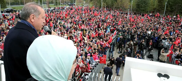 Erdoğan, tek millet, tek bayrak, tek vatan ve tek devlet için 'evet' dediklerini, milletin de şüphe duymadığı içine 'evet' dediğini ifade etti.