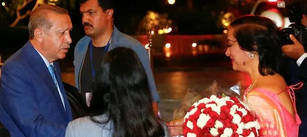 Cumhurbaşkanı Recep Tayyip Erdoğan, Hindistan'ın başkenti Yeni Delhi'de Hint usulü bir gelenekle karşılandı. Erdoğan, konaklayacağı otele giriş yaparken yoluna gül yaprakları serildi.