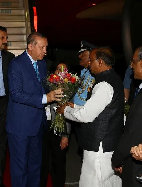 Cumhurbaşkanı Recep Tayyip Erdoğan, özel uçak "TUR" ile saat 16.55'te Hindistan'ın başkenti Yeni Delhi'ye geldi. Cumhurbaşkanı Erdoğan, Palam Askeri Üssü'ne gelişinde Hindistan Gençlik ve Spor Bakanı Vijay Goel, Hindistan'ın Ankara Büyükelçisi Rahul Kulshreshth ile Türkiye'nin Yeni Delhi Büyükelçisi Şakir Özkan Torunlar tarafından karşılandı.