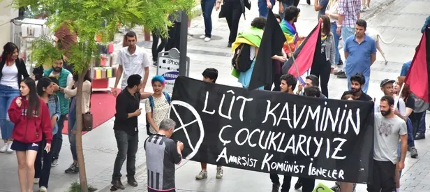 Grup, ellerinde gökkuşağı bayrakları ve çeşitli pankartlar taşıyarak yürümeye başladı. Travesti, transseksüel, lezbiyen, trans ayrımcılığına ve son yıllarda artan cinayetlere dikkat çekmek amacıyla düzenlenen yürüyüşte grup üyeleri, 'Velev ki i..neyiz', 'Susma haykır, eşcinseller vardır', 'Faşizme karşı bacak omuza', 'Sevişe sevişe kazanacağız' sloganları attı.