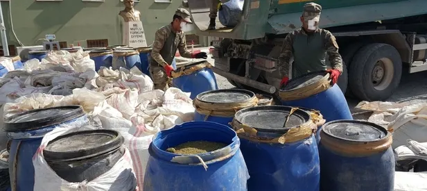 Ele geçirilen esrarın 1,5 tonu toprağa gömülü halde bulundu. Söz konusu esrar, iş makineleri yardımıyla toprak altından çıkarıld
