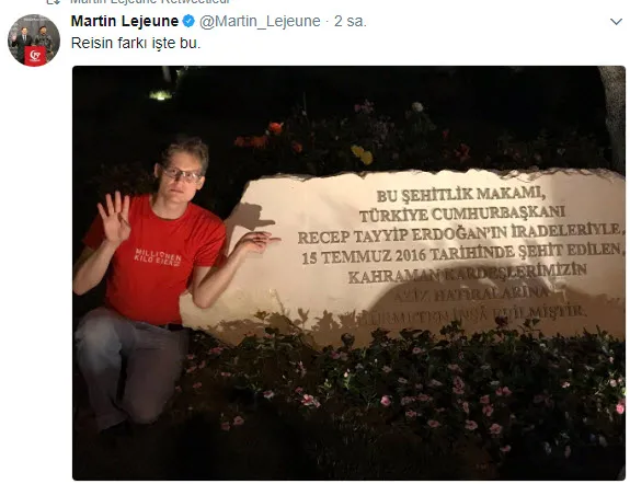 Türkiye'ye yakınlığıyla bilinen ve desteğini esirgemeyen Alman gazeteci Martin Lejeune,15 Temmuz anma törenlerine katıldı, fotoğraflarını sosyal medyadan yayınladı.