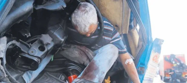 Korkunçkaza dün Kocaeli'de yaşandı. Yusuf Peltek'in kullandığı çelik profil yüklü TIR, başka bir TIR'a çarptı. Peltek, aracın kupasında sıkıştı. Mucizevi bir şekilde hayatta kalan sürücü, iki büklüm halde kurtarılmayı bekledi. Bir saatlik çalışmanın ardından ise bulunduğu yerden çıkarıldı. "Ayakkabımı gören oldu mu?" diye soran yaralı, hastaneye kaldırılarak tedaviye alındı. Kaza nedeniyle ulaşıma kapanan D-100 Karayolu'nda uzun araç kuyrukları oluştu.