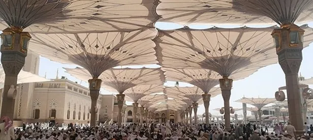 Cuma namazını Mescid-i Nebevi'de kılmak isteyen binlerce hacı adayı saatler öncesinden Haremi Şerif'e akın etmeye başladı. Kalabalık ve sıcak hava nedeniyle hacı adaylarından pek çoğu namazlarını avluda açılan dev şemsiyeler altında kıldı.