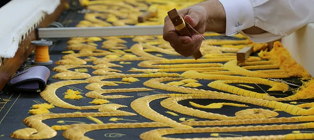 115 personelin büyük bir titizlikle, yaklaşık 700 kilogram saf ipek, 120 kilogram gümüş ve altından dokuduğu yeni örtü, hacı adaylarının Arafat’a akın ettiği sabah saatlerinde değiştirildi.