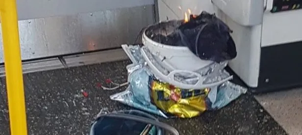 Twitter'da paylaşılan bir fotoğrafta yanmış bir kova görülüyor. Londra itfaiyesi olayın Parsons Green istasyonunda gerçekleştiği açıklandı.