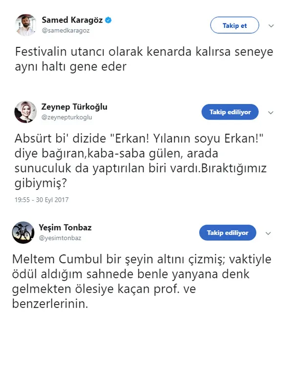 Herkes ne olduğunu anlamaya çalışırken oyuncu Caner Cindoruk da ayağa kalkıp duruma tepki gösterdi. Sanat camiasından ve sosyal medyadan Cumbul'a halen tepki gelmeye devam ediyor.