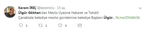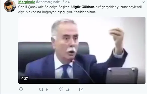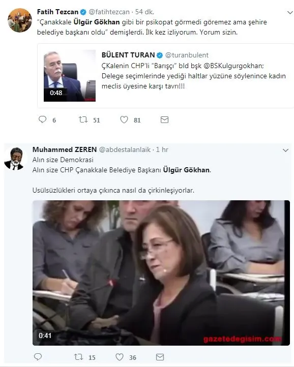 Çanakkale Belediye Meclisi toplantısında, AK Partili Belediye Meclisi üyesi Av. Tülay Ömercioğlu'nun, CHP'nin İsmetpaşa Mahallesi delege seçimlerinde geçersiz ve imzasız oy kullanılmasını dile getirdiği sırada CHP'li Çanakkale Belediye Başkanı Ülgür Gökhan'ın sert ve terbiye sınırlarını zorlayan tavırlarına maruz kaldı.