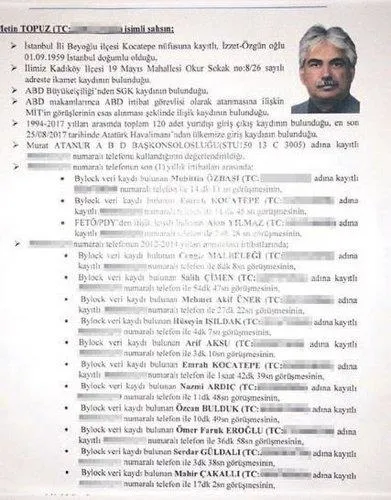 İstanbul Cumhuriyet Başsavcılığı, 17-25 Aralık kumpas soruşturması kapsamında geçtiğimiz günlerde gözaltına alınıp önceki gün casusluk suçundan tutuklanan, ABD İstanbul Başkonsolosluğu irtibat görevlisi Metin Topuz'un, 15 Temmuz darbe girişimine katılan asker ve polis amirleriyle bağlantısı olduğunu saptadı. İşte FETÖ mensupları ve Pensilvanya'da yaşayan örgüt elebaşısı Fetullah Gülen arasında irtibatı sağladığı belirtilen Topuz'la ilgili yeni detaylar: