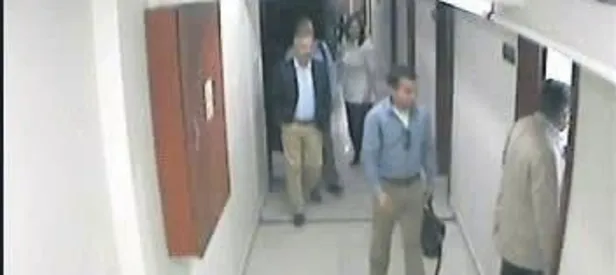 Metin Topuz ve beraberindeki 3 kişinin, 5 Aralık 2013 günü saat 12:17,31'de FETÖ'cü Yakup Saygılı'nın makamına geldiği görülüyor. Saygılı, Topuz ve 3 kişiyi kapıda karşılıyor.
