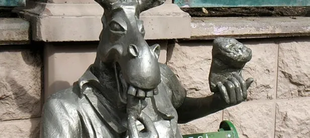 Eskişehir Büyükşehir Belediyesi'nce kent merkezinden geçen Porsuk Çayı kıyısındaki yeşil alana "çekirdek çitleyen eşek" heykeli yerleştirildi.