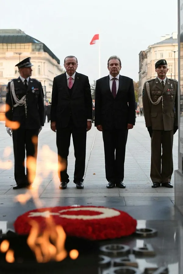 Cumhurbaşkanı Recep Tayyip Erdoğan, Polonya temasları kapsamında Meçhul Asker Anıtı'nı ziyaret ederek çelenk bıraktı.