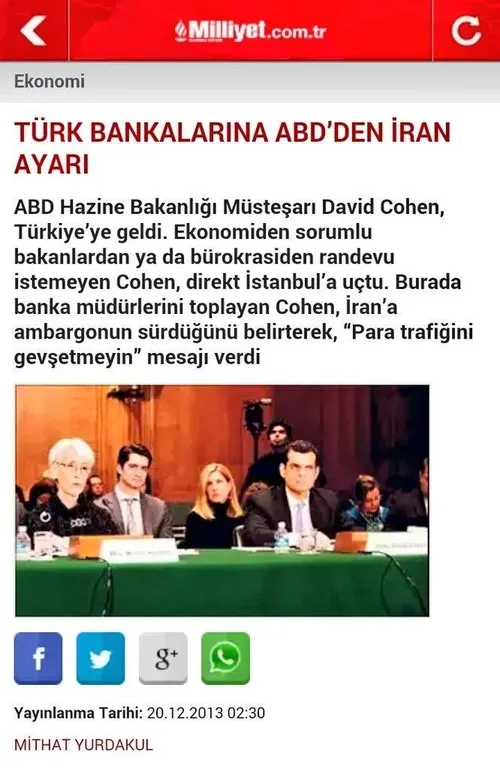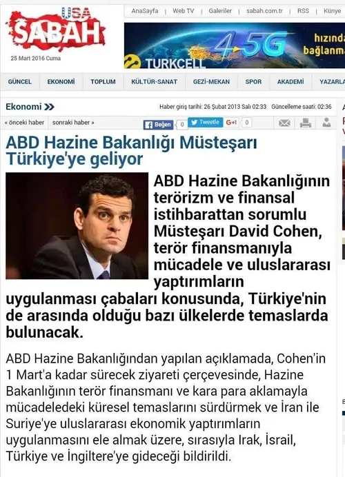 FETÖ'nün emniyet ve yargı içindeki militanlarının gerçekleştirdiği 17 ve 25 Aralık darbe girişiminin bizzat ABD tarafından yönetildiği gün geçtikçe ortaya çıkmıştı. Hükümeti devirme operasyonunda yer alan ve operasyonun kilit ismi ABD Hazine Bakanlığı Terörizm ve Finansal İstihbarat" müsteşarı David Cohen'di. Cohen Türkiye'nin İran ile olan ticaretini tamamen sona erdirmesini talep ederek üstü kapalı tehdit etmişti.