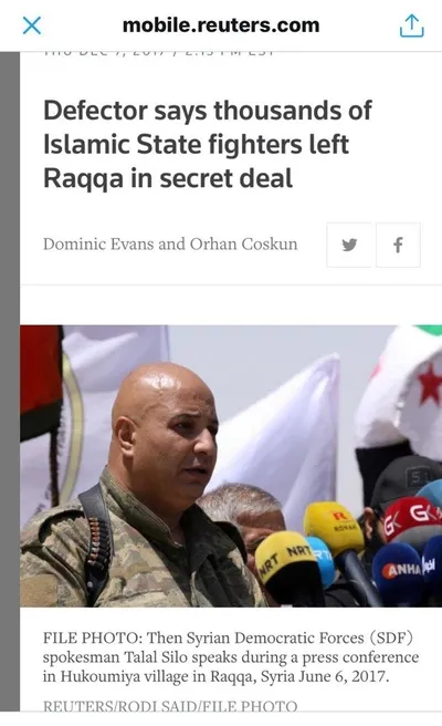 Suriye'de terör örgütü PYD/PKK'dan kaçan Talal Silo’nun Anadolu Ajansı’na itiraflarını İngiliz Haber Ajansı Reuters da tüm abonelerine servis etti. ABD'nin terör örgütü DEAŞ ile kirli işbirliğini tüm dünya gördü.