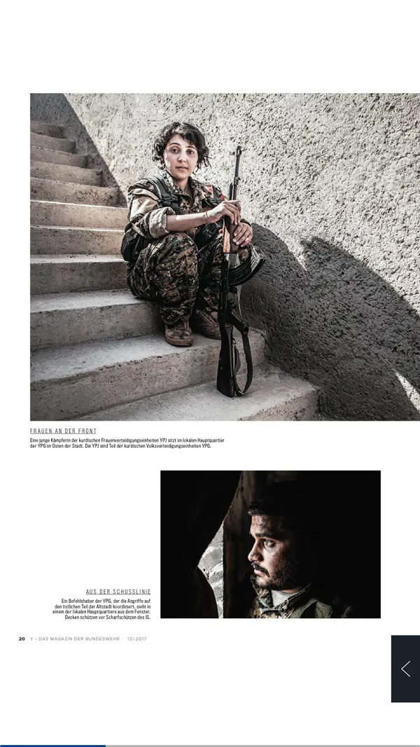 Almanya Federal Silahlı Kuvvetler’in (Bundeswehr) aylık çıkardığı dergi Y, Aralık sayısında terör örgütü PKK’nın Suriye’deki uzantısı YPG’ye yer verdi.