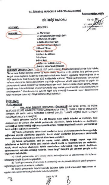 Sekizinci Ağır Ceza'ya 7 Aralık 2017'de gönderilen bilirkişi raporunda; Ataşehir Belediye Başkanvekili İlhami Yılmaz ve 7 sanığın ihalede usulsüzlük yaptığı ifade edildi. İhale hukuku bilirkişisi Nesrin Özkaya, sınai mülkiyet hukuku bilirkişisi avukat Canan Yırgın Yılmaz ve sinai mülkiyet uzmanı Birsen Ok'un hazırladığı raporun özeti şöyle: "Heyetimiz bahse konu tasarım tescilindeki ürünün ve kalp kulakçıklı şeklinin, idarenin ihtiyacı olan hizmetin yerine getirilmesi açısından tek seçenek olmaması ve tescil sahibinden alınan yetki ile tek firmanın teklif sunmuş ve neticede ihalenin onun üzerine bırakılmış olması hususları dikkate alındığında; kalp şeklinde puzzle kauçuk zemin kaplama malzemesi teknik şartnamesinde belli bir -tescilli tasarımın/ modelin belirtilmiş olmasının (Mal Alımı İhaleleri Uygulama Yönetmeliği madde 14, 4734 sayılı Kamu İhale Kanunu madde 12/3) fırsat eşitliğini sağlamadığı, ihaleye katılım dolayısıyla rekabeti artırıcı değil kısıtlayıcı bir etkisi olduğu görüşündedir."
