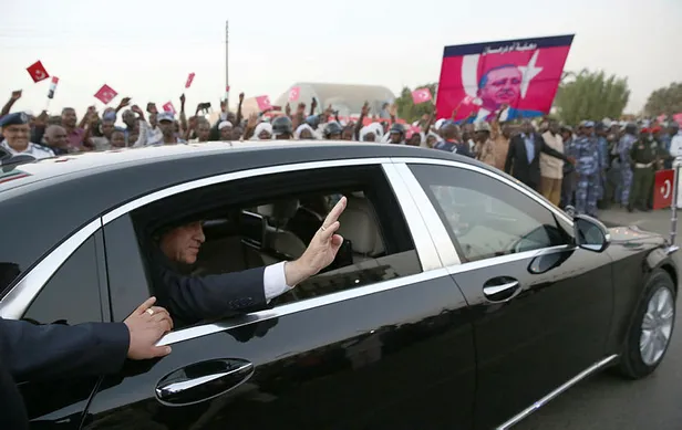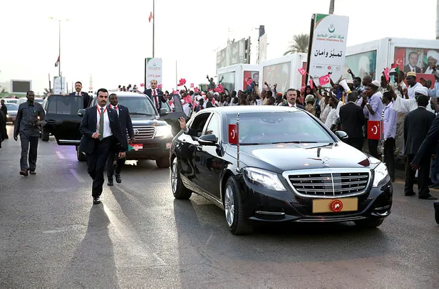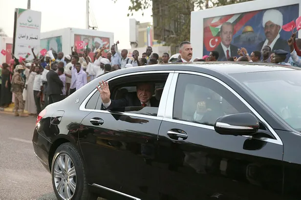 Sudan'daki temaslarını sürdüren Cumhurbaşkanı Recep Tayyip Erdoğan, güzergah boyunca ellerinde Türk ve Sudan bayrakları ile kendisine sevgi gösterisinde bulunan Sudanlıları selamladı.