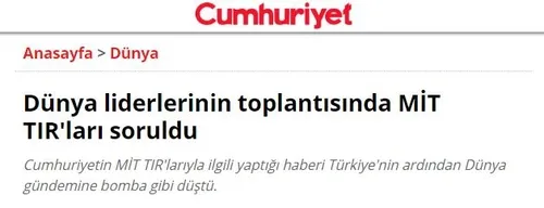Türkiye'nin Bayırbucak Türkmenlerine gönderdiği yardımı engelleyen FETÖ'nün TSK, emniyet ve yargı içerisindeki militanları MİT TIR'larını durdurarak Türkiye'yi uluslararası arenada 'teröre yardım eden ülke' konumuna düşürmek istediler. Fakat başarılı olamadılar. Ardından ise örgütün gazetecilerinden Can Dündar'a TIR'ların görüntüleri verildi. Dündar da Cumhuriyet gazetesinde bunları yayınlamıştı.